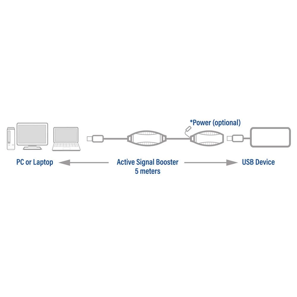 Is de USB-kabel te kort? Verleng dan het USB-signaal met 5 meter door gebruik te maken van de AC6105 Actieve USB Signaalversterker. Deze kabel gebruik je om randapparatuur zoals: een webcam, printer, harde schijf, toetsenbord en muis over een langere afstand aan te sluiten. De AC6105 kan tot 2 keer gekoppeld worden en is overeenkomstig met USB 3.2 Gen1 (USB 3.0) specificaties. De boosterkabel heeft een DC input voor het optioneel aansluiten van een 5V stroomadapter.