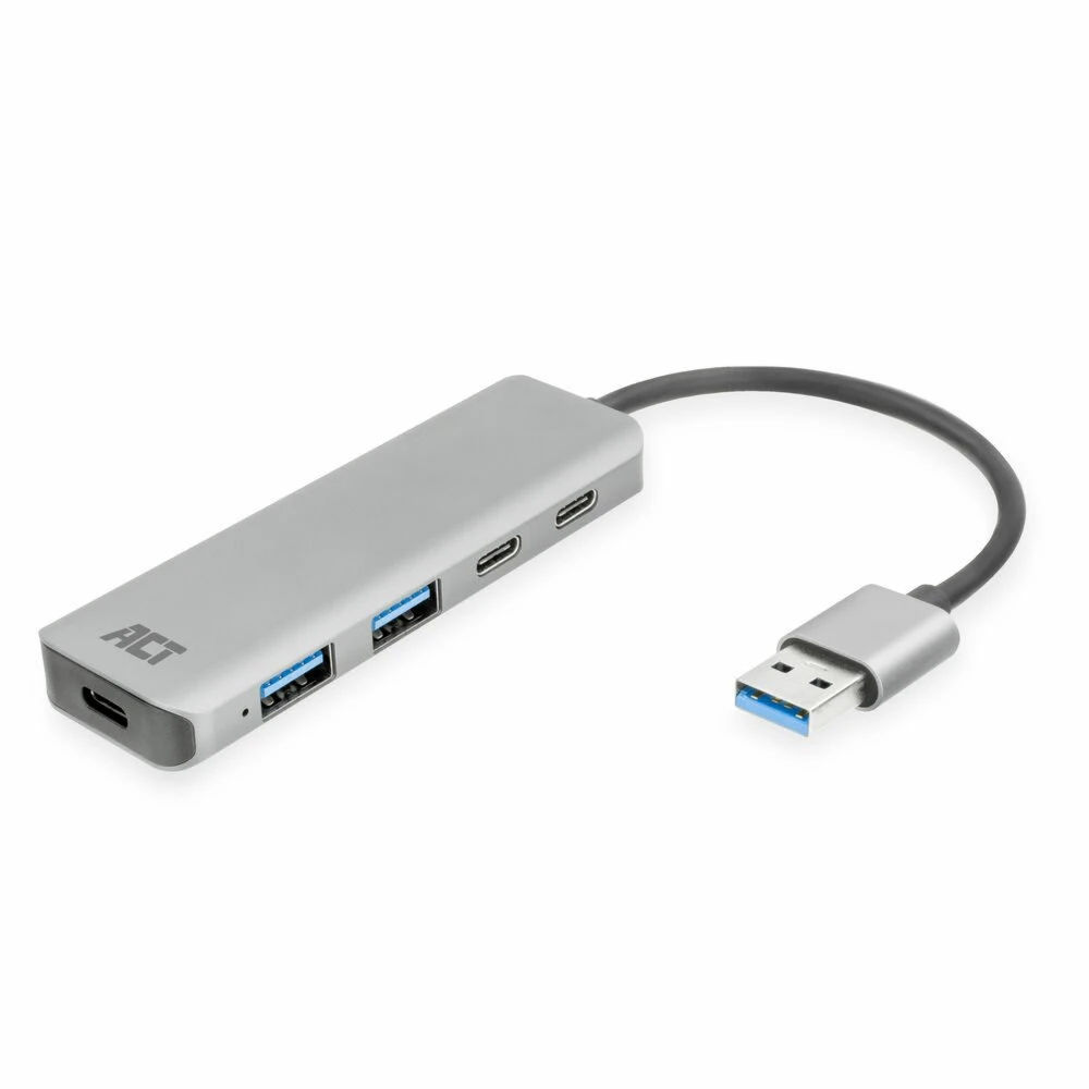 De ACT AC6125 USB-hub heeft een lichtgewicht ontwerp van massief aluminium dat gemakkelijk in je laptoptas past. De hub voegt vier extra USB-poorten toe aan je laptop of computer voor het aansluiten van USB-A- en USB-C-apparaten.