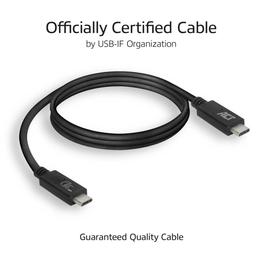 Gebruik de USB-C 3.2 Gen1 aansluitkabel voor het aansluiten van USB-C-apparaten. De USB-kabel heeft een maximale data overdrachtssnelheid tot 5Gbps. De kabel ondersteunt 60W Power Delivery en DP Alternate mode. De USB-C is officieel gecertificeerd door USB-IF. Dit betekent dat de kabel volledig is getest door het USB Implementers Forum, Inc. volgens de officiële standaarden.