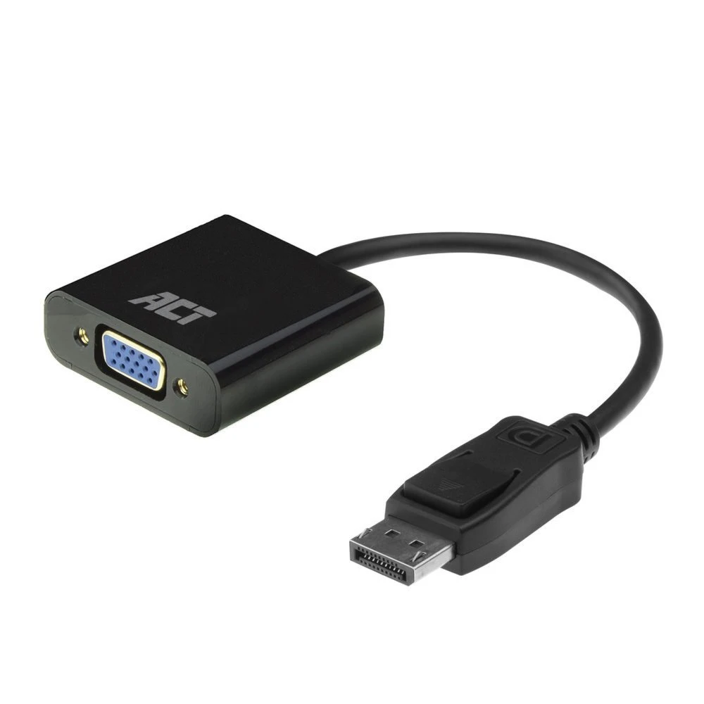 De ACT AC7515 DisplayPort naar VGA Adapter verbindt een laptop met DisplayPort-output met een monitor of beamer met VGA. De maximale resolutie is 1920 x 1080 @ 60Hz.