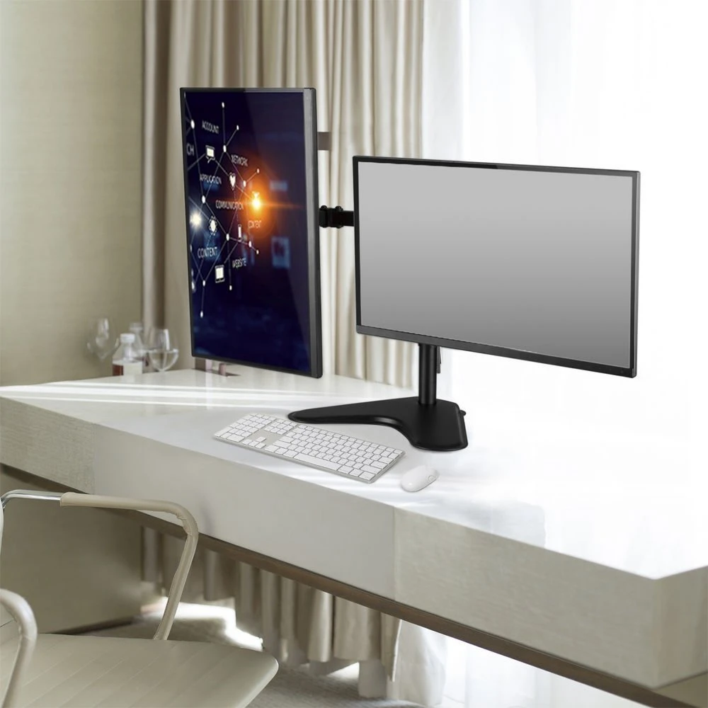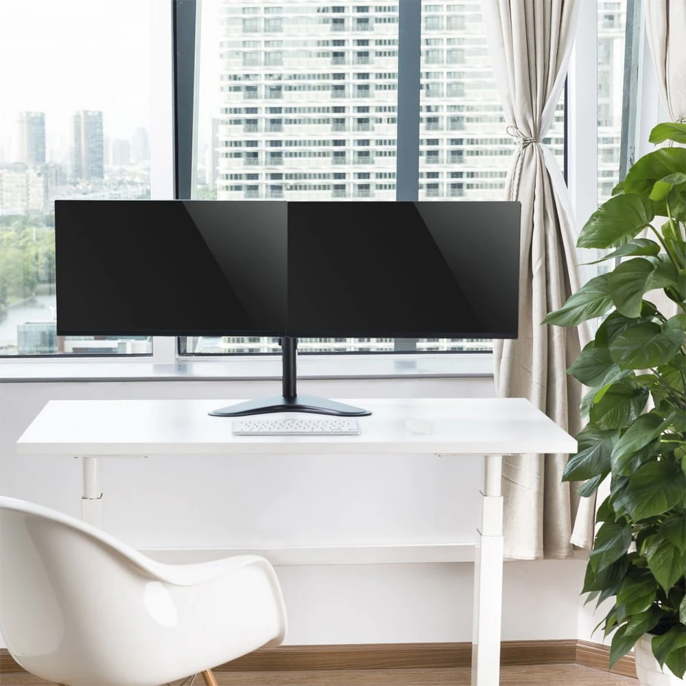 Plaats twee monitoren (tot en met 32 inch en 8kg elk) op de ergonomische AC8320 Dubbele Monitor Bureaustandaard. De steun heeft drie draaipunten voor het instellen van de ideale kijkafstand en zorgen van ruimtebesparing op je werkplek. De hoogte en de kijkhoek van de schermen stel je eenvoudig naar je eigen wensen af. Lijn de schermen individueel uit of kantel, zwenk of roteer ze. Je voorkomt rug-, nek-, en schouderklachten.