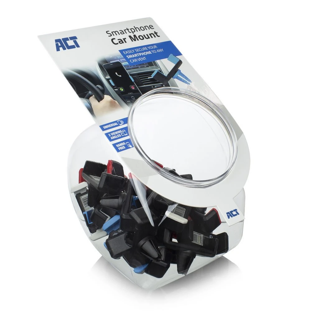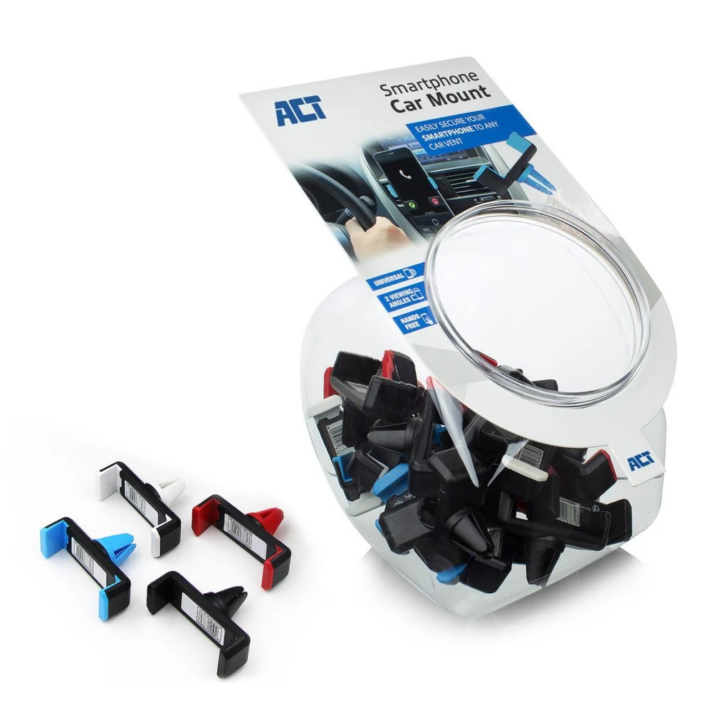 Gebruik je jouw smartphone als navigatiesysteem in de auto? Dan is het van belang om goed zicht te hebben op het scherm. Gebruik de ACT Universele Smartphone Autohouder om je smartphone een vaste plaats te geven in de auto en handsfree te navigeren. Bevestig de Autohouder eenvoudig in het ventilatierooster van de auto. Dankzij de antisliplaag en metalen klemsysteem blijft de smartphone goed zitten. Voor een optimale weergave kan de houder 360° worden gedraaid.