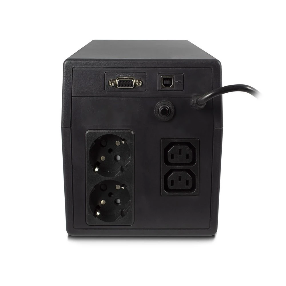 De AC2310 Line Interactive UPS 1000VA heeft twee IEC C13 outputs, twee EU stopcontacten type F female, een USB-poort en een RS232-verbinding om je computer en kostbare bestanden te beschermen tegen stroomuitval en spanningspieken. Dankzij de ingebouwde batterij van de Line Interactive UPS heb je 50 minuten de tijd, bij een belasting van 120W, om je bestanden veilig op te slaan.