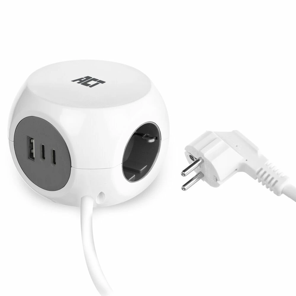 De AC2420 kubusvormige stekkerdoos heeft drie stopcontacten voor het aansluiten van elektrische apparaten. De drie USB-poorten (2x USB-C en 1x USB-A) zijn geschikt voor het laden van smartphones en tablets met een maximaal vermogen van 30W. De USB-C poorten ondersteunen Power Delivery 3.0 en de USB-A poort ondersteunt Quick Charge 3.0 voor snel en efficiënt opladen.