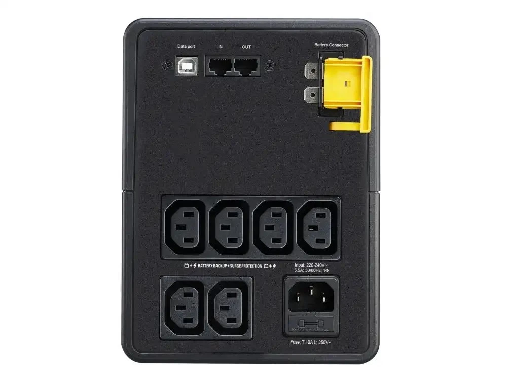 De UPS is voorzien van AVR, dit verlengt de levensduur van de batterij en maximaliseert de runtime door lage en hoge spanningen te corrigeren zonder de batterij te ontladen. Verder beschikt de noodstroomvoorziening over 6 battery+surge protected uitgangen. Tevens is PowerChute Serial Shutdown software en een usb kabel inbegrepen.