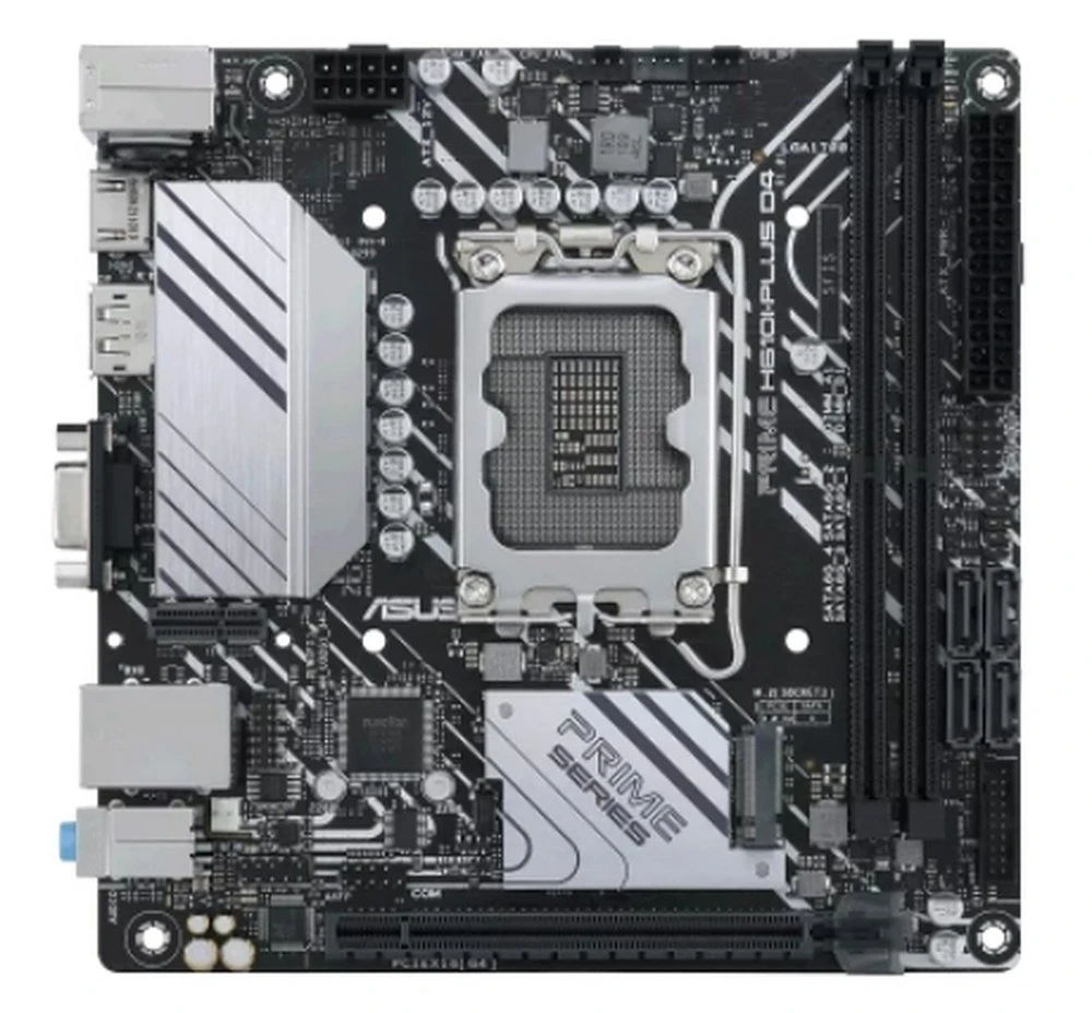ASUS PRIME H610I-PLUS D4-CSM. Processorfabrikant: Intel, Processor socket: LGA 1700, Compatibele processors: Intel® Celeron®, Intel® Core™ i3, Intel® Core™ i5, Intel® Core™ i7, Intel® Core™ i9, Intel® Pentium®. Ondersteunde geheugen types: DDR4-SDRAM, Maximum intern geheugen: 64 GB, Geheugen slots type: DIMM. Ondersteunde opslagstationinterfaces: M.2, SATA III, Ondersteunde types opslag-drives: HDD & SSD. Ethernet interface type: Gigabit Ethernet. Component voor: PC, Moederbord form factor: mini ITX, Moederbord chipset familie: Intel