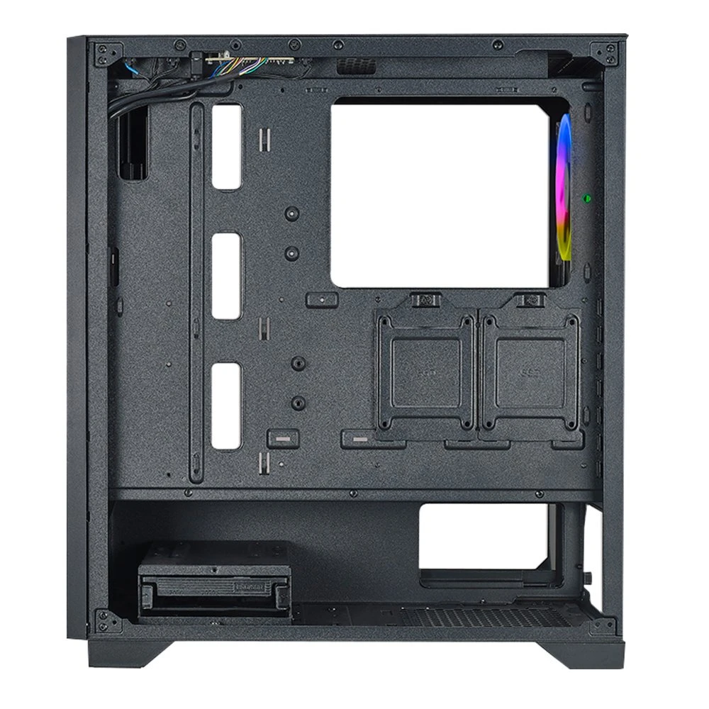 Er is voldoende ruimte in de behuizing, met ondersteuning voor een grafische kaart tot 360 mm, tot vier 2,5″ schijven, 9 ventilatorpoorten en radiatoren aan de bovenkant en voorkant.