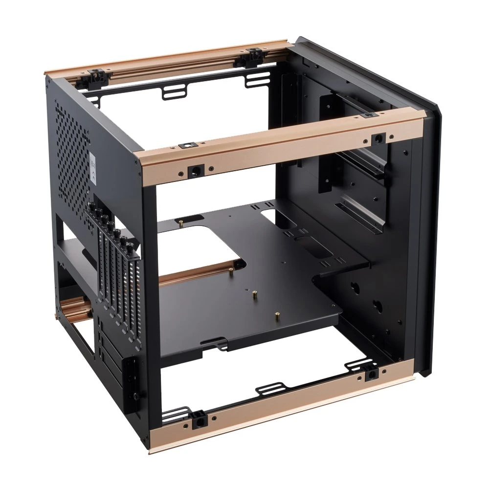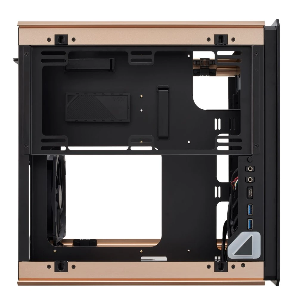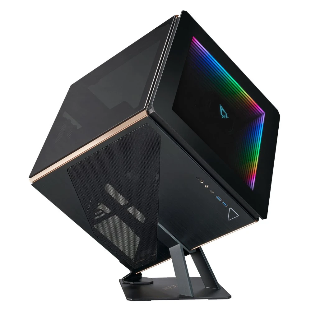 Ontdek de veelzijdigheid en stijl van de Azza Regis. Deze kubusvormige PC-behuizing combineert zwart, goud en grijs voor een opvallende uitstraling. De voeding bevindt zich aan de onderkant en ondersteunt ATX-voedingen. De behuizing biedt ventilatie-opties met zijkant-ventilators van 120 of 140 mm en een voorgeïnstalleerde 140 mm ventilator aan de achterkant. Met ruimte voor zowel 2.5″ als 3.5″ HDD’s, zorgt de Azza Regis voor flexibiliteit en voldoende opslag. Afmetingen: 481 mm breed, 529 mm diep, en 610 mm hoog.