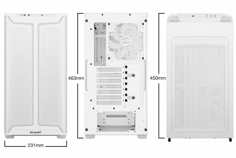 De be quiet! Pure Base 501 DX RGB Wit (BGW77) is een hoogwaardige midi-tower behuizing die optimale luchtstroom combineert met stille werking, een stijlvol zijpaneel van gehard glas en een modern vormgegeven voorzijde met verfijnde ARGB-verlichting aan zowel de binnen- als buitenzijde van de kast.