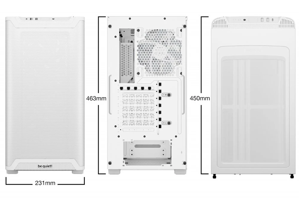 Ondanks zijn compacte afmetingen van 463 mm hoog, 231 mm breed en 450 mm diep, biedt deze behuizing verrassend veel ruimte voor krachtige componenten. Zo is er plaats voor grafische kaarten tot 368 mm lang en CPU-koelers tot 178 mm hoog. Bovendien kan de PCIe-slotstructuur worden gedraaid voor een optionele verticale installatie van de grafische kaart, wat niet alleen esthetisch aantrekkelijk is maar ook de luchtstroom kan verbeteren.