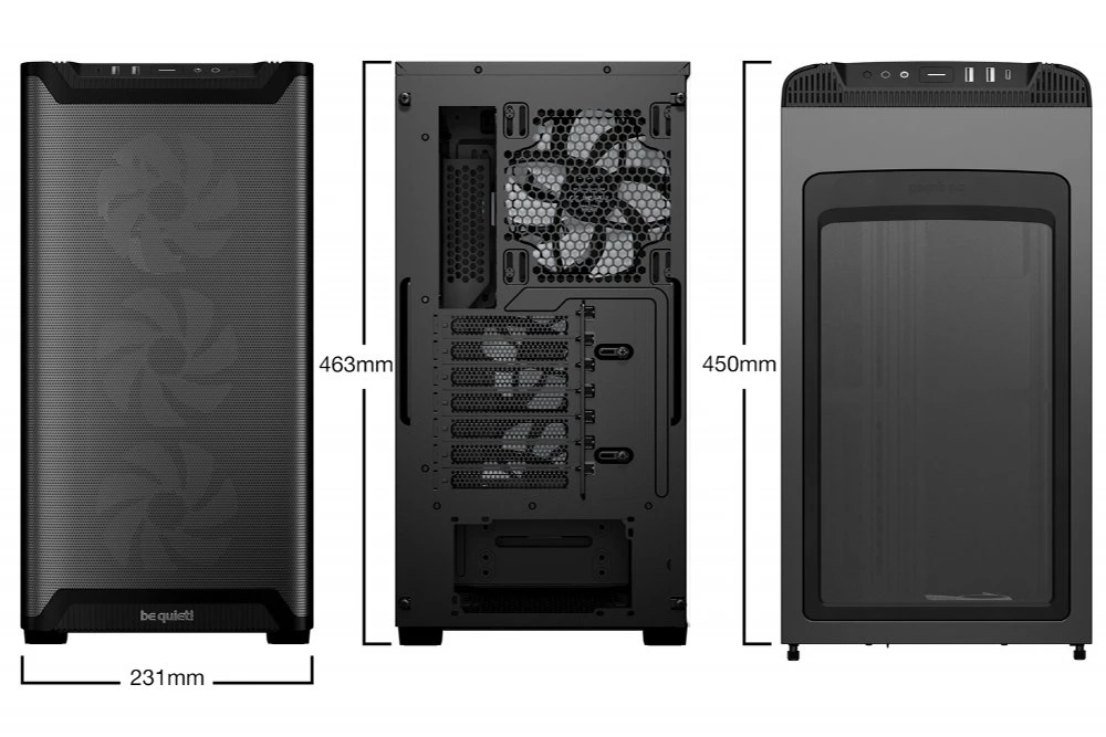 Ondanks zijn compacte afmetingen van 463 mm hoog, 231 mm breed en 450 mm diep, biedt deze behuizing verrassend veel ruimte voor krachtige componenten. Zo is er plaats voor grafische kaarten tot 368 mm lang en CPU-koelers tot 178 mm hoog. Bovendien kan de PCIe-slotstructuur worden gedraaid voor een optionele verticale installatie van de grafische kaart, wat niet alleen esthetisch aantrekkelijk is maar ook de luchtstroom kan verbeteren.