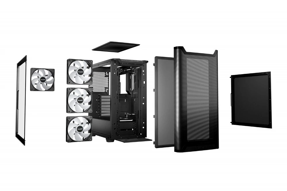 Het voorpaneel en de bovenkant zijn voorzien van een high airflow mesh-structuur die een maximale luchtinlaat mogelijk maakt, wat resulteert in optimale koeling van alle interne componenten. Vier vooraf geïnstalleerde Light Wings LX PWM-ventilatoren zorgen voor een indrukwekkende combinatie van stille werking, hoge luchtdruk en een kenmerkend ARGB-lichteffect dat het systeem een unieke uitstraling geeft. De meegeleverde ARGB-controller en de gecombineerde ARGB-PWM-hub bieden ondersteuning voor maximaal zes ventilatoren, waardoor uitbreiding eenvoudig en overzichtelijk blijft.