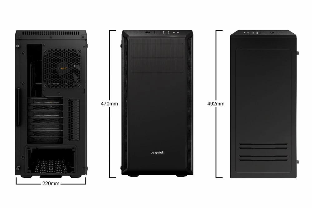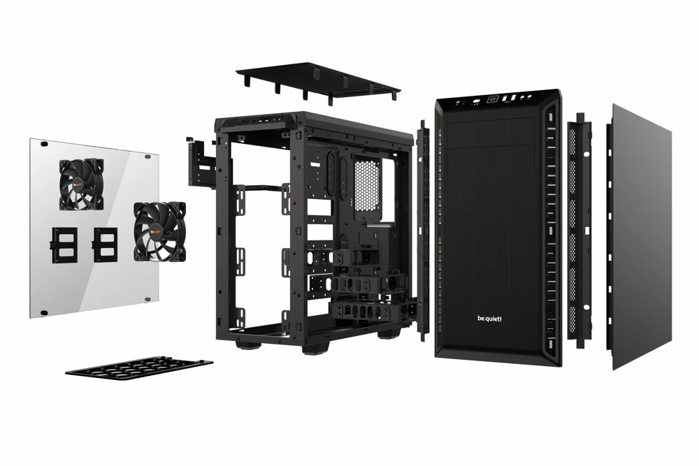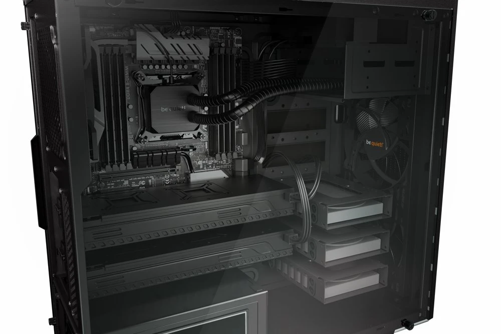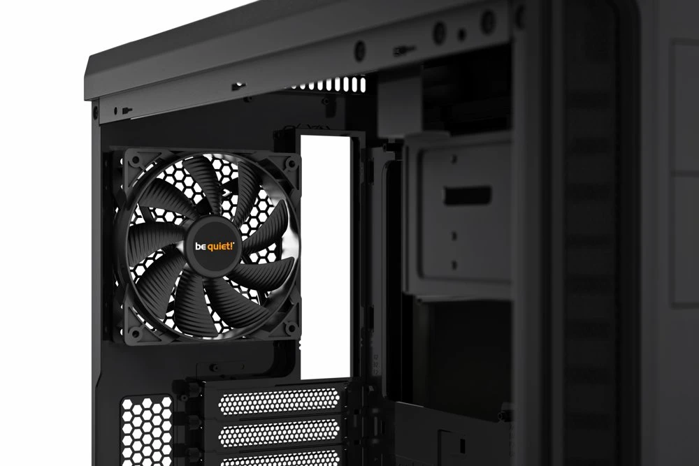 De Pure Base 600 is uitgerust met geluiddempende materialen aan de voor-, boven- en zijpanelen, wat zorgt voor een fluisterstille werking. De meegeleverde Pure Wings 2 ventilatoren (1 x 120mm voor en 1 x 140mm achter) bieden een efficiënte en stille koeling. Daarnaast biedt de behuizing ruimte voor extra ventilatoren en ondersteunt het waterkoeling met radiatoren tot 360mm.