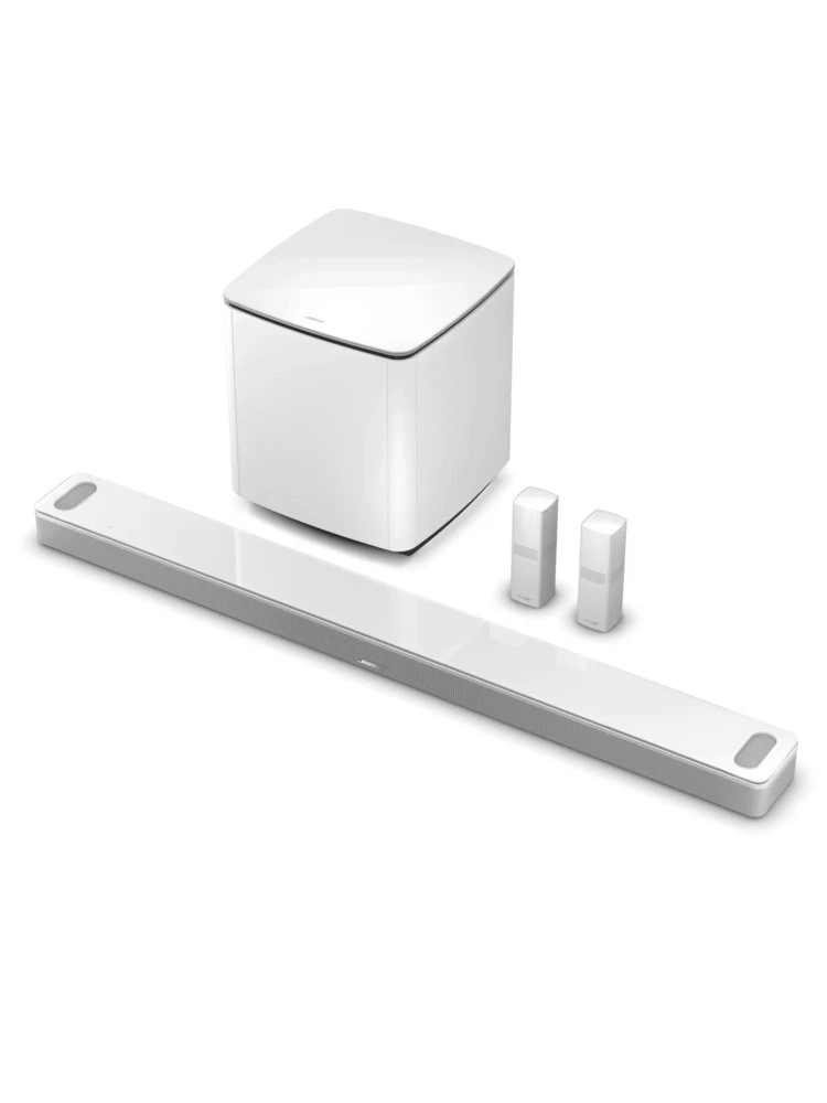 De Bose Smart Ultra Wit (5.1.2-kanaals soundbar) is een krachtige, draadloze soundbar die Dolby Atmos-ondersteuning biedt voor een meeslepend bioscoopgevoel in huis. Met negen geoptimaliseerde drivers, inclusief twee opwaarts gerichte units, creëert deze soundbar een 3D-geluidseffect zonder extra luidsprekers.