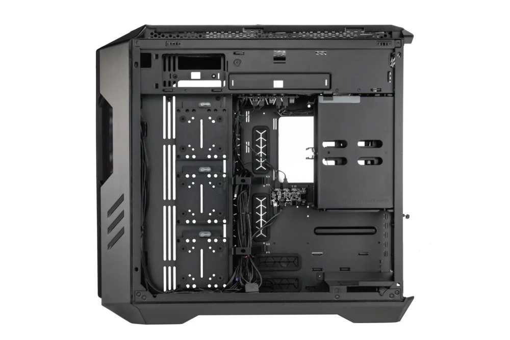 Het interieur van de behuizing is ontworpen om een gemakkelijke installatie en uitbreiding van componenten mogelijk te maken. De behuizing biedt voldoende ruimte voor grote grafische kaarten en moederborden, en er zijn tal van kabelbeheeropties om een netjes en opgeruimd uiterlijk te garanderen.