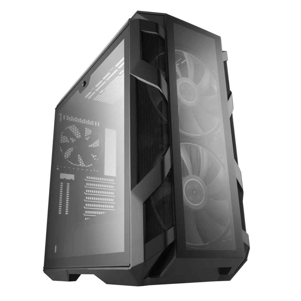 Cooler Master MasterCase H500M. Vormfactor: Midi Tower, Soort: PC, Kleur van het product: Grijs. Vermogenstoevoer locatie: Bodem, Ondersteunde vormfactoren stroomvoorziening: ATX,PS2. Aantal geïntstalleerde ventilators voorkant: 2x 200 mm, Voorste ventilators ondersteunende diameters: 120,140,200 mm, Geïnstalleerde ventilators achterkant: 1x 140 mm. Ondersteunde HDD-groottes: 2.5,3.5″. Breedte: 248 mm, Diepte: 544 mm, Hoogte: 546 mm