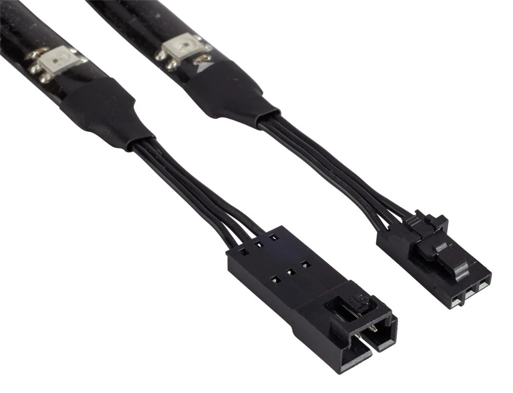 Vier meegeleverde verlichtingsstrips met magneet, met tien RGB-LED’s per strip, maken het eenvoudig om in enkele minuten RGB-verlichting op jouw pc aan te brengen.