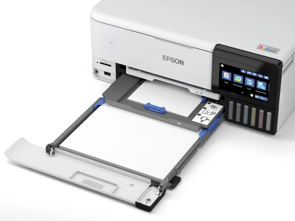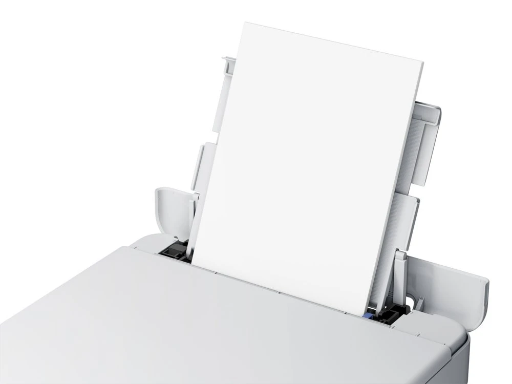 De ET-8500 heeft papierladen in foto- en A4-formaat aan de voorkant en kan rechtstreeks op geschikte cd’s/dvd’s afdrukken. De lade aan de achterzijde is geschikt voor speciale media zoals knutselpapier en kaarten, terwijl je met de rechte A4-papierinvoer kunt afdrukken op media met een dikte tot 1,3 mm en een lengte tot 2 meter!
