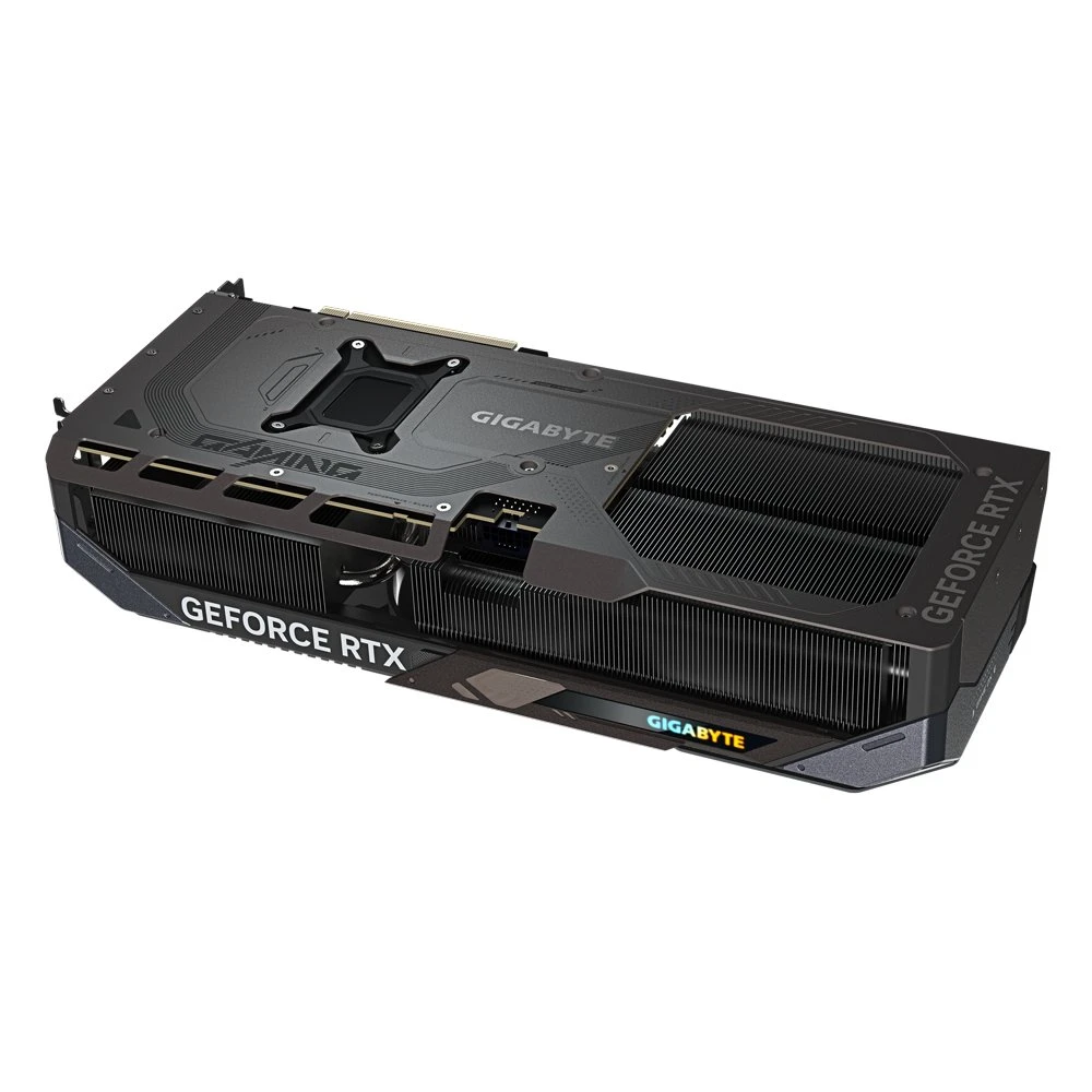 Wat betreft stroomvoorziening maakt deze kaart gebruik van één 16-pins PCIe Gen 5-connector. Een adapter naar twee 8-pins aansluitingen is inbegrepen in de verpakking, zodat je hem ook met bestaande voedingen kunt gebruiken. De TDP bedraagt 360 watt en Gigabyte adviseert een voeding van minimaal 750 watt voor stabiele werking. De afmetingen van de kaart bedragen 340 mm in lengte, 140 mm in hoogte en 70 mm in dikte, wat hem geschikt maakt voor de meeste moderne mid- en full-tower behuizingen.