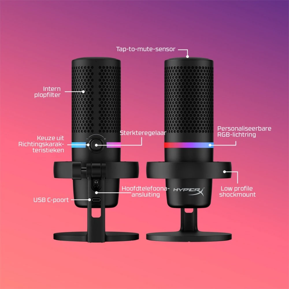 Ontdek de HyperX 4P5E2AA, een USB-microfoon met een opvallende stijl en indrukwekkend geluid. Het mooie ontwerp, de subtiele RGB-lichtring en de lage schokdemper maken de HyperX DuoCast een veelzijdige USB-microfoon voor gaming, werk en contentcreatie. De microfoon biedt handige functies zoals tikken om te dempen en een levendige LED-microfoon demp-indicator. De lage schokdemper past perfect bij het strakke, minimalistische uiterlijk en absorbeert trillingen voor helder geluid. Met een meegeleverde montageset is de DuoCast compatibel met de meeste bevestigingen en werkt hij met PC, PS5™, PS4™ en Mac®. Personaliseer de RGB-lichtring met de HyperX NGENUITY-software om je eigen unieke stijl uit te dragen.