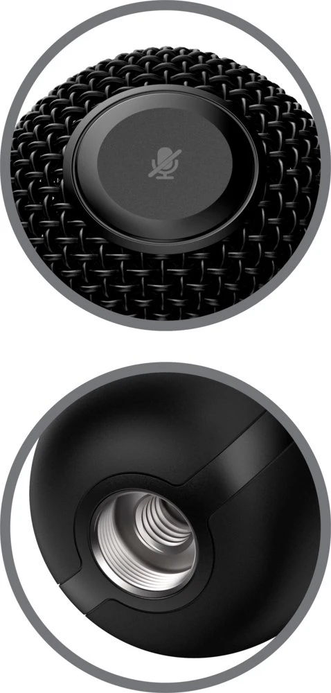 Tap-to-Mute sensor met LED-statusindicator. Tik gewoon op de bovenkant van de microfoon om te dempen, en de kenmerkende LED-indicator laat je direct zien of je wel of niet uitzendt.