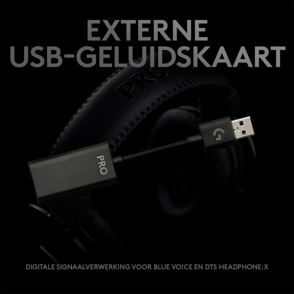 Vereist meegeleverde externe USB-geluidskaart, Windows-pc en Logitech G HUB-software.