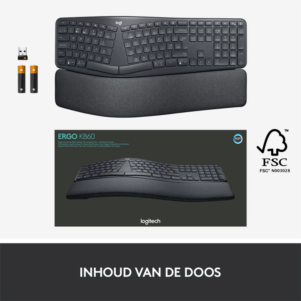 Logitech K860 Ergo | Draadloos Bluetooth Toetsenbord met Receiver | QWERTY
