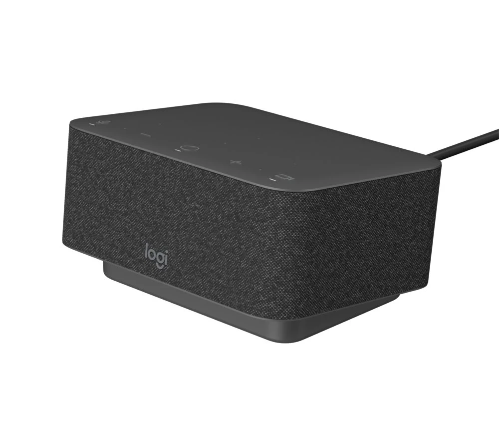 Logi Dock: Alles-in-één dockingstation met knoppen voor vergaderingen en een speakerphone.