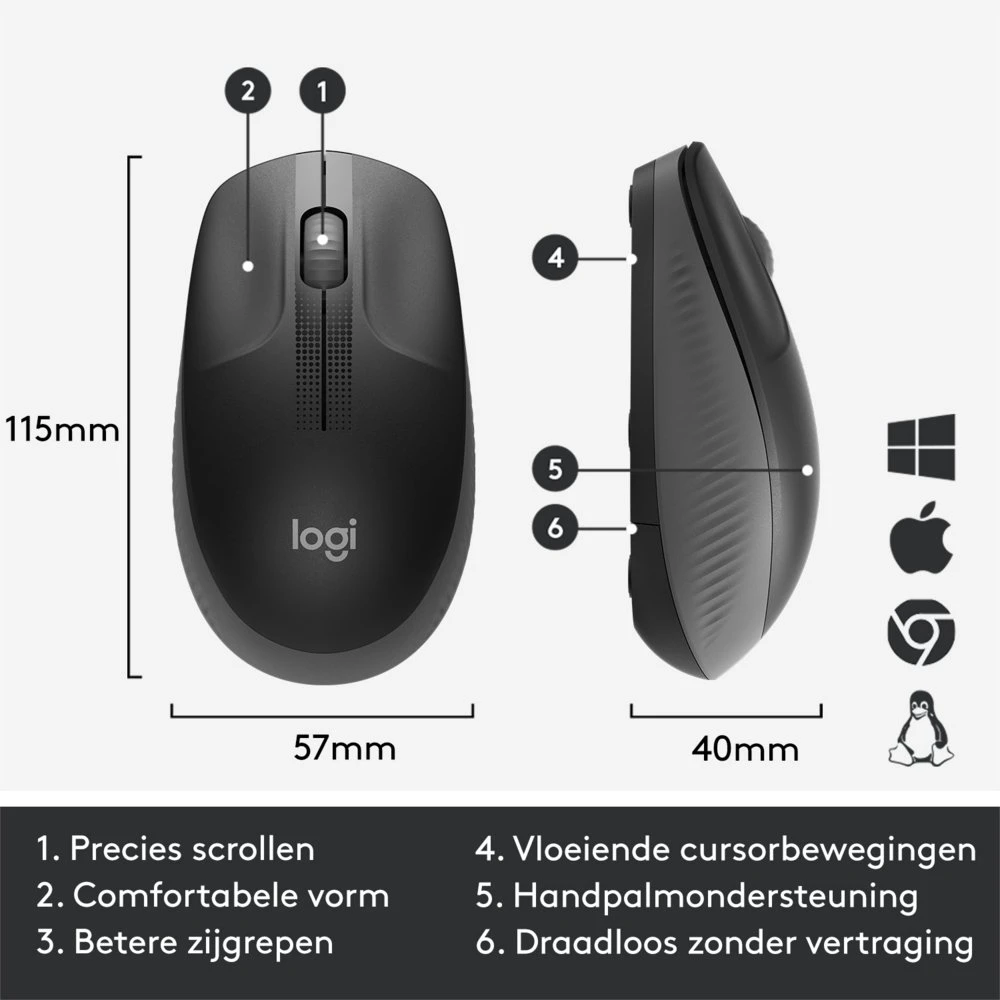Logitech M190 | Draadloze Muis | Links- en Rechtshandig | RF | 1000 DPI | Zwart