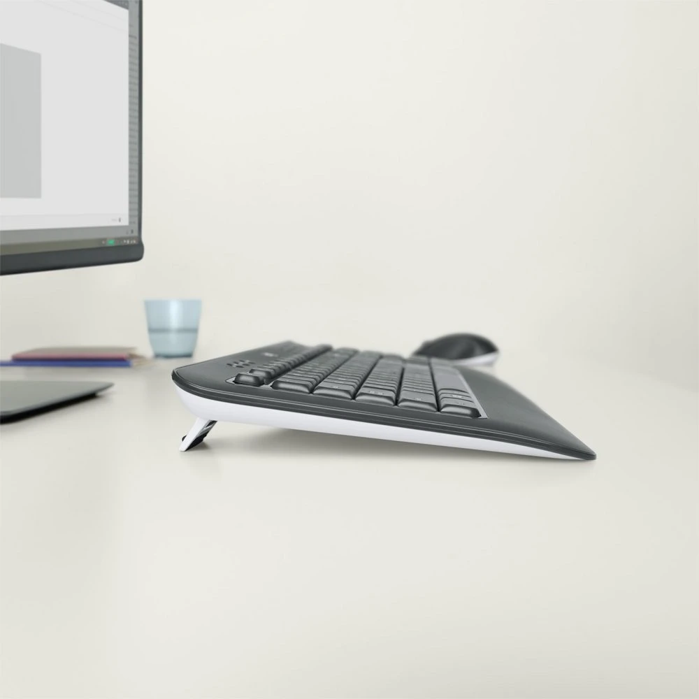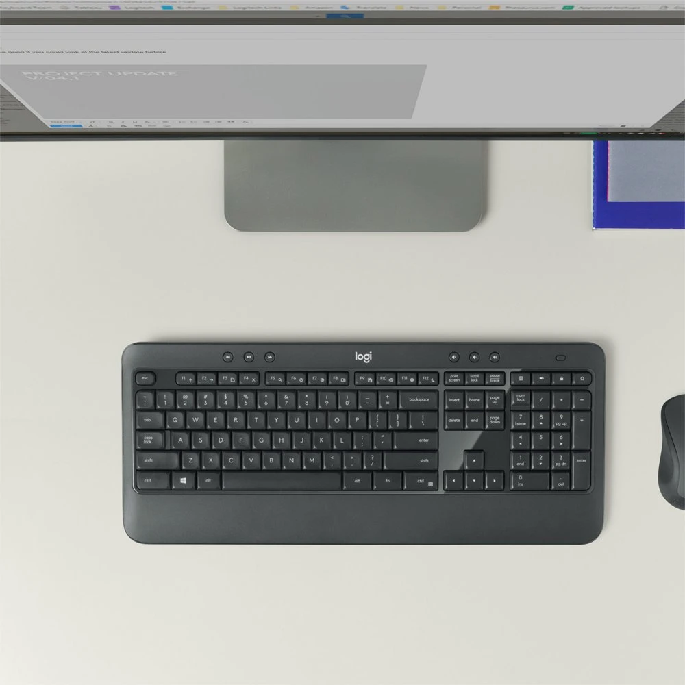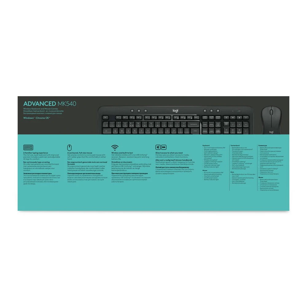 De MK540 Advanced is een draadloze toetsenbord- en muiscombinatie die meteen vertrouwd aanvoelt, en is ontworpen voor precisie, comfort en betrouwbaarheid. Het toetsenbord van normaal formaat is geoptimaliseerd voor precisie en een stille toetsaanslag. Dankzij de handsteun en verstelbare voetjes profiteer je van langdurig comfort, en de ergonomisch gevormde muis is ontworpen om perfect in elke hand te passen. Profiteer van plug-en-play voor het toetsenbord en de muis met één kleine USB-ontvanger voorzien van de Unifying™-technologie van Logitech. Via een betrouwbare, versleutelde draadloze verbinding met een bereik van 10 meter, vrijwel zonder vertragingen of uitval. Het toetsenbord heeft 36 maanden lang geen nieuwe batterijen nodig en de muis gaat 18 maanden mee.