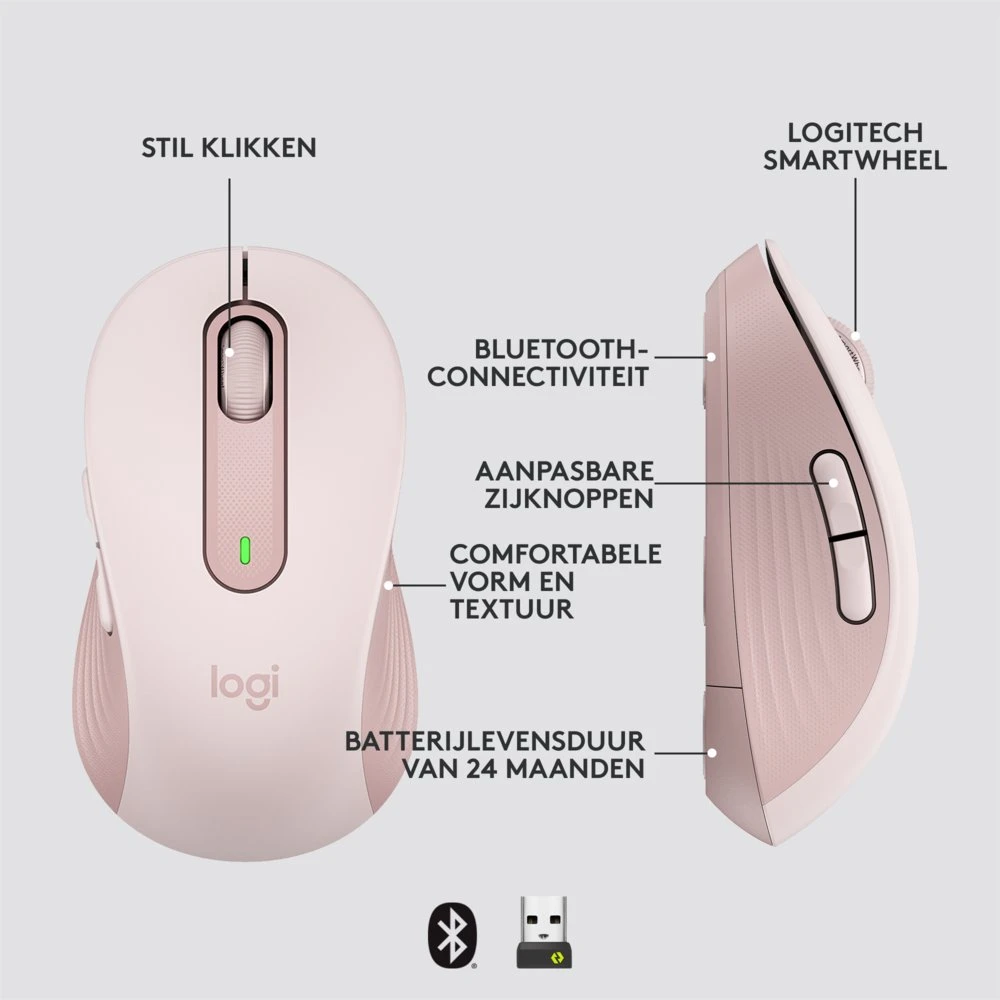 Je gaat genieten van het werken met je Signature M650. Elke muis heeft een geronde vorm, een zacht duimgedeelte en rubberen zijgrepen om je hand goed op zijn plaats te houden. Zorg voor meer comfort en focus tijdens je werk.