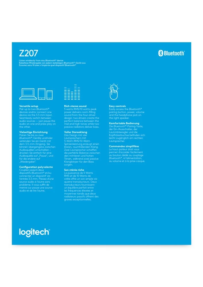 Luister draadloos muziek via de Bluetooth® functie, zoals je smartphone of tablet. Daarnaast kun je één apparaat bedraad verbinden met de Z207, zoals bijvoorbeeld je computer.