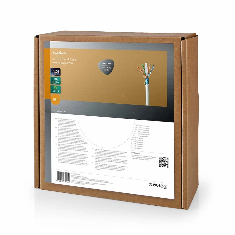 Nedis netwerkkabel | Cat6 | F/UTP (FTP) | 50 m | Grijs | CCBG8526GY50S