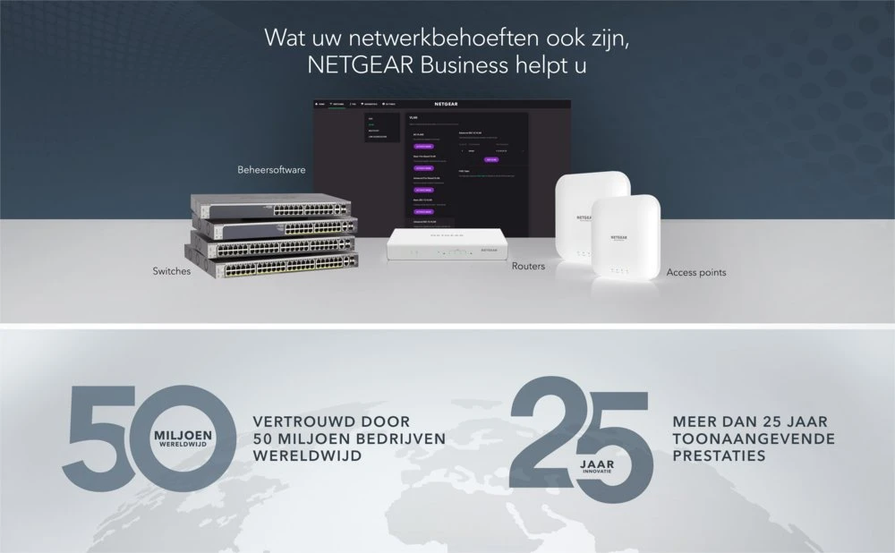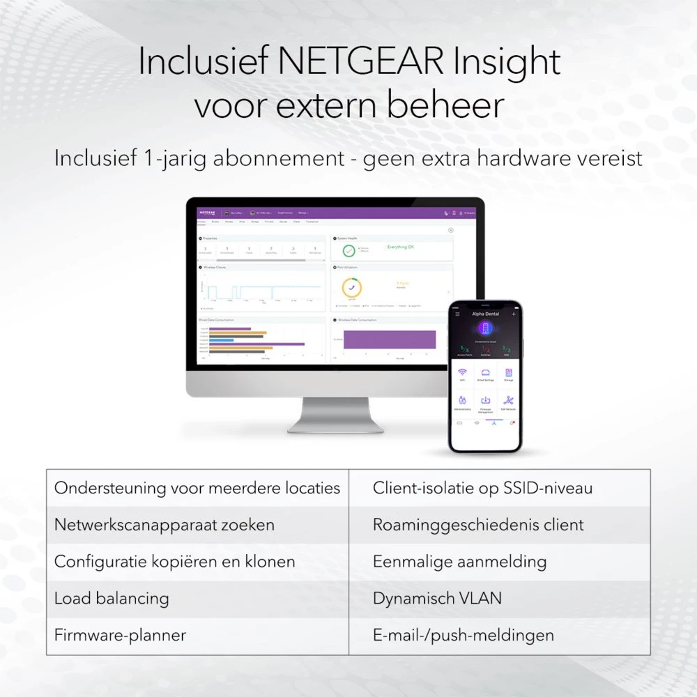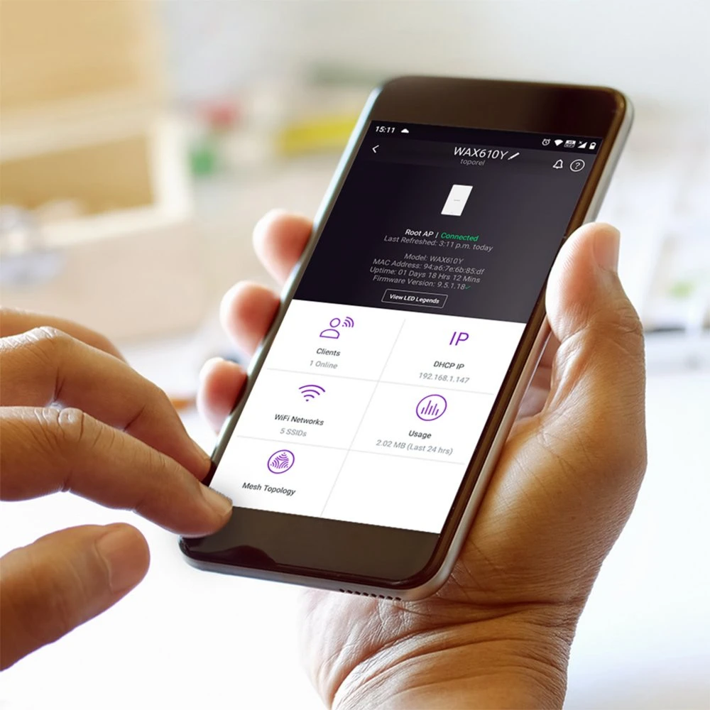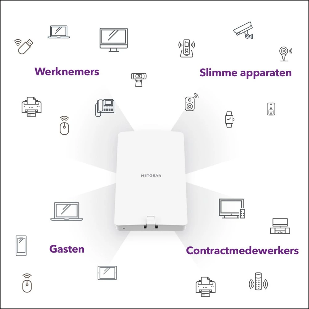 Ideaal voor WiFi-omgevingen met hoge dichtheid, ondersteund door robuuste en naadloze roaming tussen een groot aantal WAX610- en andere NETGEAR Business WiFi access points