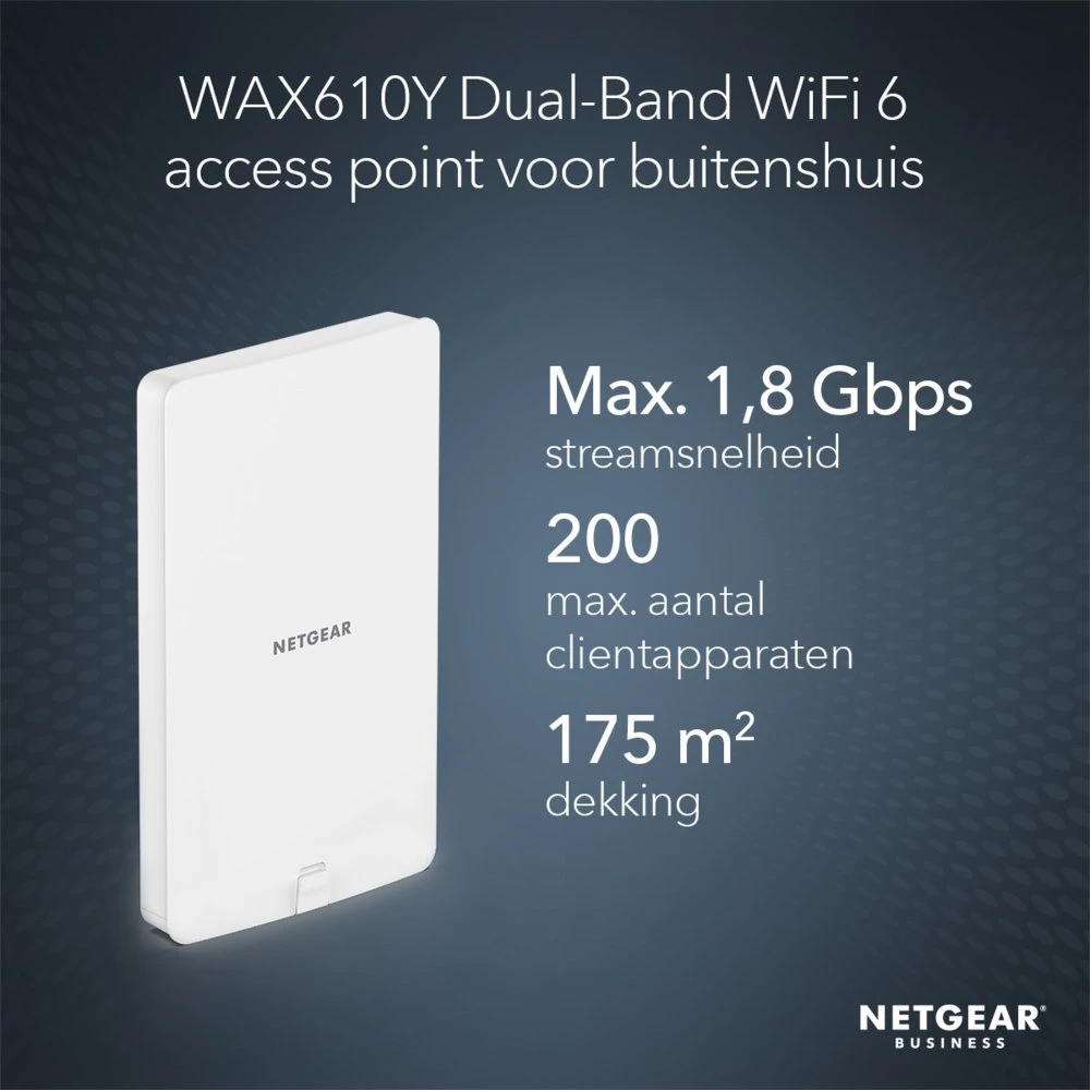 NETGEAR draadloos access point voor buitenshuis (WAX610Y)- WiFi 6 Dual-Band AX1800-snelheid | Tot 200 apparaten | 1 x 2,5G Ethernet-poort | IP55 weerbestendig | 802.11ax | Insight Remote Management | PoE+ voeding