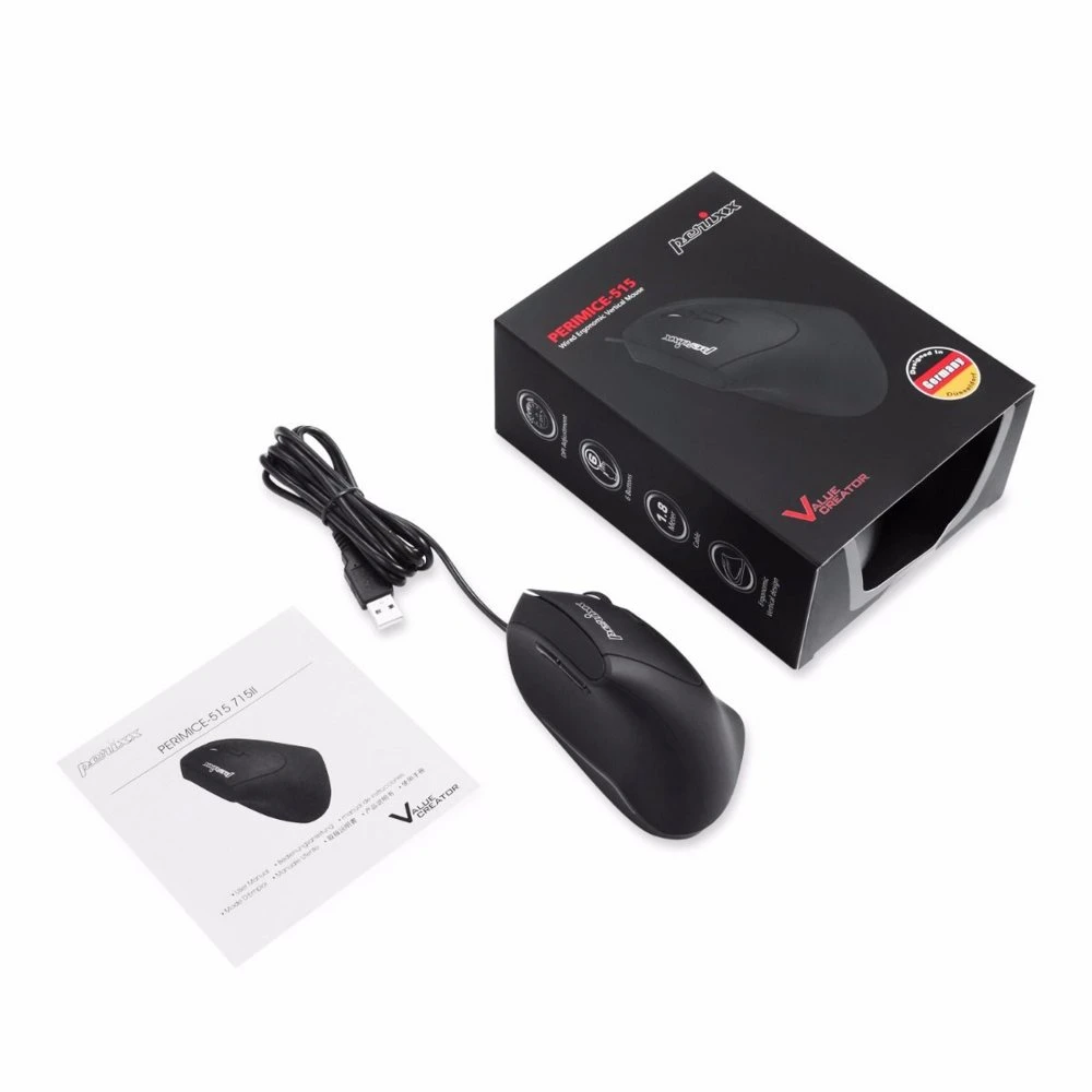 De PERIMICE-515II is een bekabelde ergonomische verticale muis, ideaal voor middelgrote en grote rechtshandige gebruikers. Deze muis heeft een 6-knoppenontwerp en een optische sensor met een bewegingsresolutie van 1600 DPI. De muis is uitgerust met knoppen voor vooruit en achteruit bladeren in internetbrowsers en een DPI-schakelknop. Dankzij de USB Type-A aansluiting is de muis eenvoudig te gebruiken met Plug and Play. De afmetingen van de muis zijn 11,8 x 6,8 x 6,6 centimeter. De PERIMICE-515II wordt aanbevolen voor gebruikers met repetitieve stressblessures (RSI) en mensen die lange periodes achter de computer werken.
