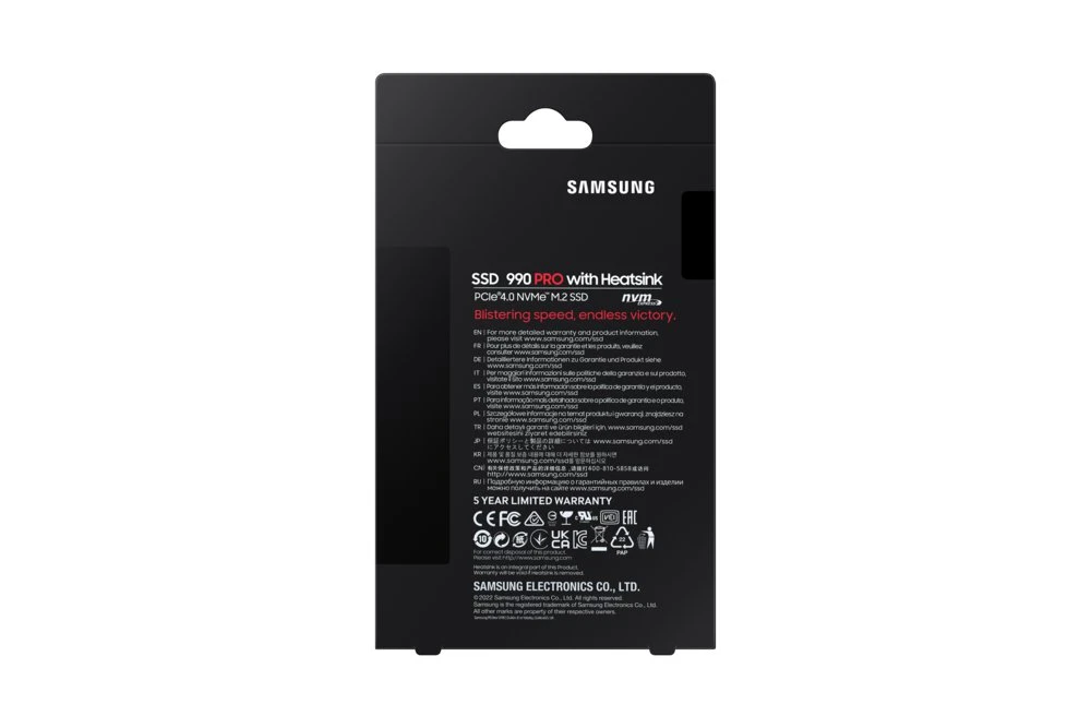 De Samsung 990 PRO biedt 1 TB aan opslagcapaciteit in een M.2-formaat, ontworpen voor gebruik in PC’s die hoge prestaties vereisen.