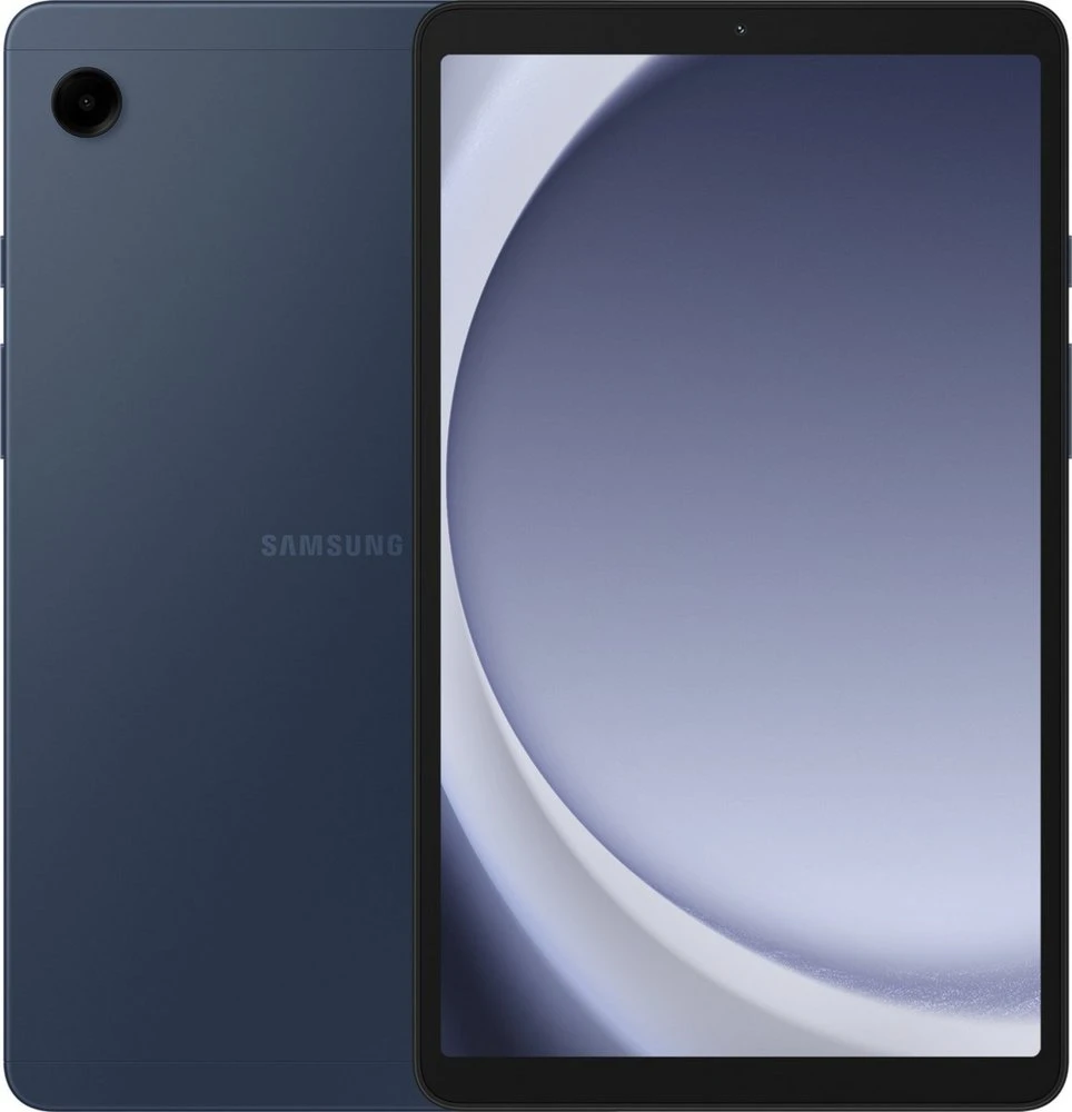 De Galaxy Tab A9+ heeft een strak ontwerp en is voorzien van een egale metalen behuizing in de kleur navy.