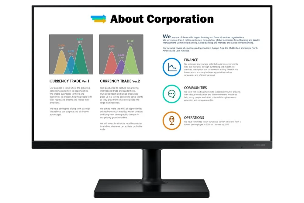 Geniet van duidelijke details, ongeacht vanuit welke hoek je kijkt. Het IPS-scherm behoudt de levendigheid van de kleuren en de helderheid op elke centimeter van het scherm. Teams kunnen prettig werken op deze monitor, en dat komt de productiviteit ten goede. Vanuit een hoek van 178˚, in alle richtingen, worden tinten en nuances correct weergegeven, zonder kleurverloop.