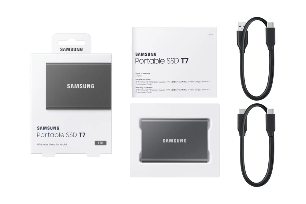 Met een indrukwekkende opslagcapaciteit van 1000 GB biedt de Portable SSD T7 voldoende ruimte om al je belangrijke bestanden, documenten, foto’s, video’s en meer op te slaan. Of je nu onderweg bent en je digitale bibliotheek bij je wilt hebben of extra opslagruimte nodig hebt voor je professionele werkbestanden, deze externe SSD heeft de capaciteit om aan je behoeften te voldoen.