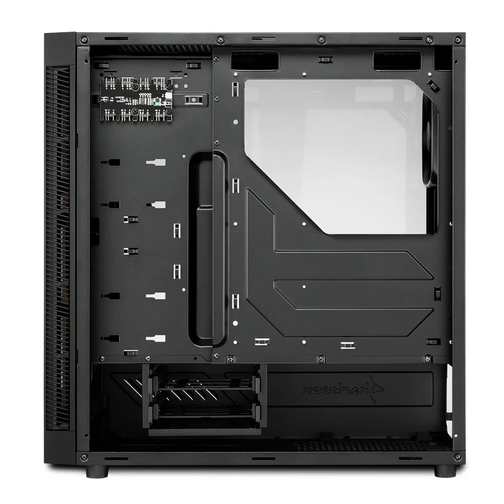 Zo helder als glas. De hardware is zichtbaar door de front- en zijpanelen van gehard glas, waarbij de voeding, HDD’s en bekabeling in de tunnel voor de voeding of achter de moederbordtray verdwijnen. Voor een eleganter uiterlijk en een verbeterde bescherming van het glas is het zijpaneel ontworpen zonder zichtbare schroeven of bouten. In plaats daarvan wordt het met duimschroeven op het achterpaneel van de behuizing bevestigd.
