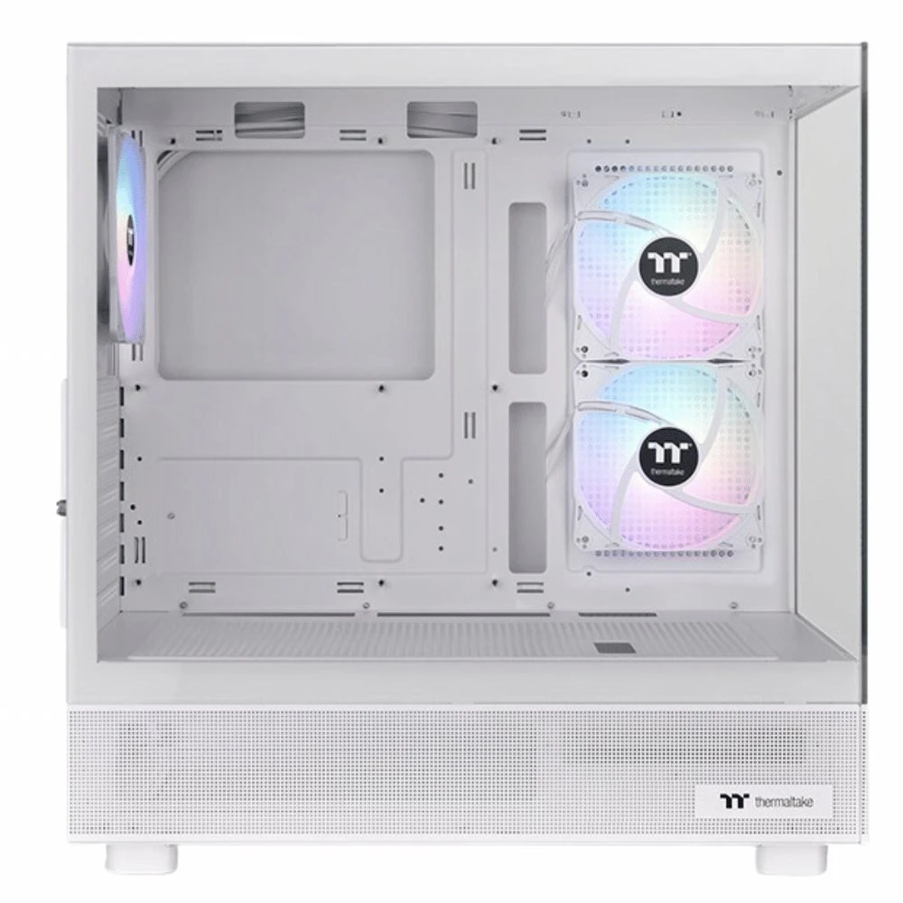 De Thermaltake View 270 TG ARGB Snow | Mid Tower Case | Wit (CA-1Y7-00M6WN-00) is een moderne behuizing die een panoramisch zicht biedt op je hardware dankzij de glazen voor- en zijpanelen. Standaard is er een 140 mm ARGB ventilator aan de achterkant geplaatst, die eenvoudig te synchroniseren is met populaire verlichtingssoftware zodat je systeem direct een dynamische uitstraling krijgt.