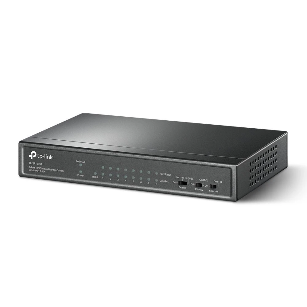 Ontdek de TP-Link TL-SF1009P, een professionele 9-poorts switch met 8 PoE+ poorten. Deze switch biedt eenvoudige Plug and Play installatie met PoE-transmissie, ideaal voor diverse toepassingen zoals surveillance in kantoren, slaapzalen en kleine bedrijven.