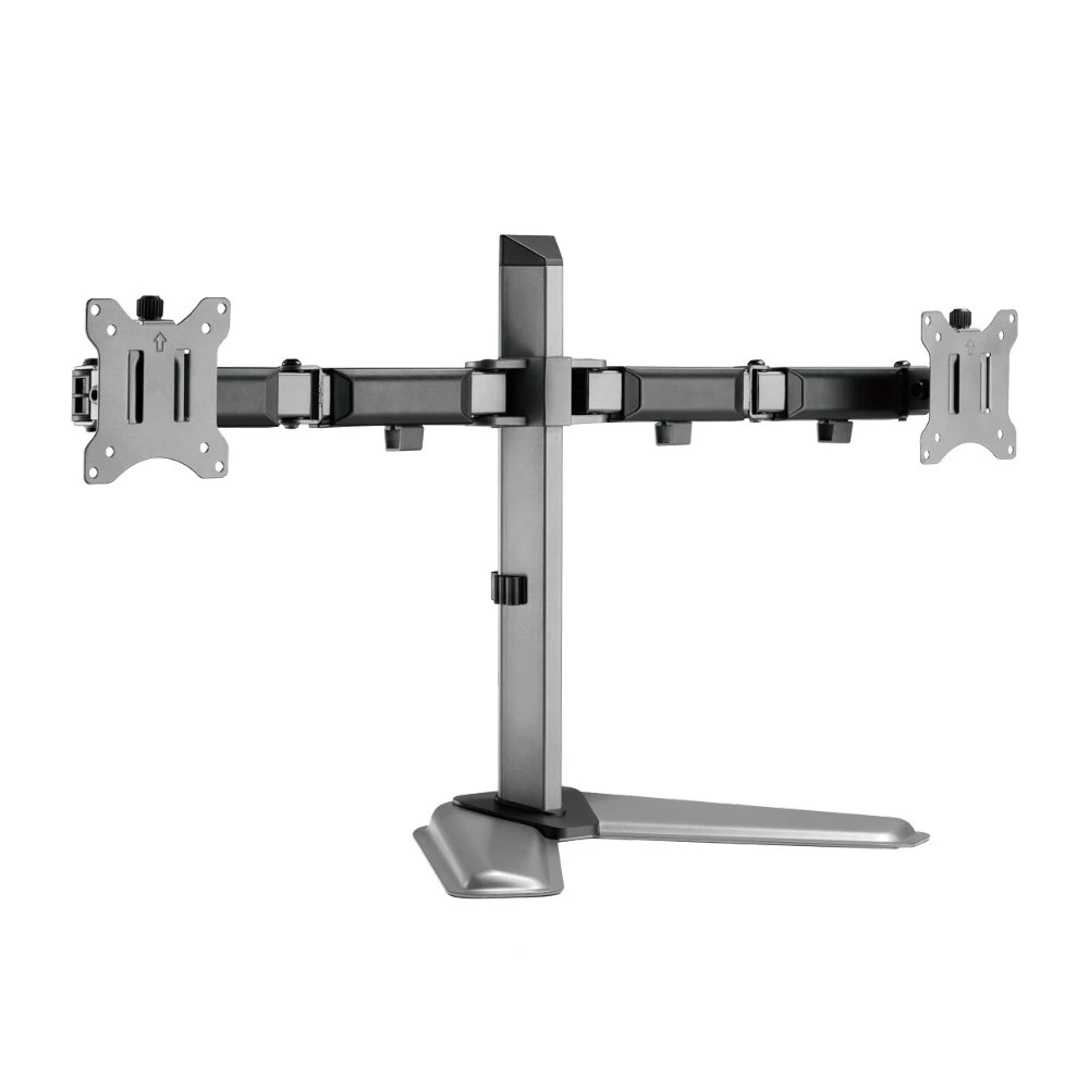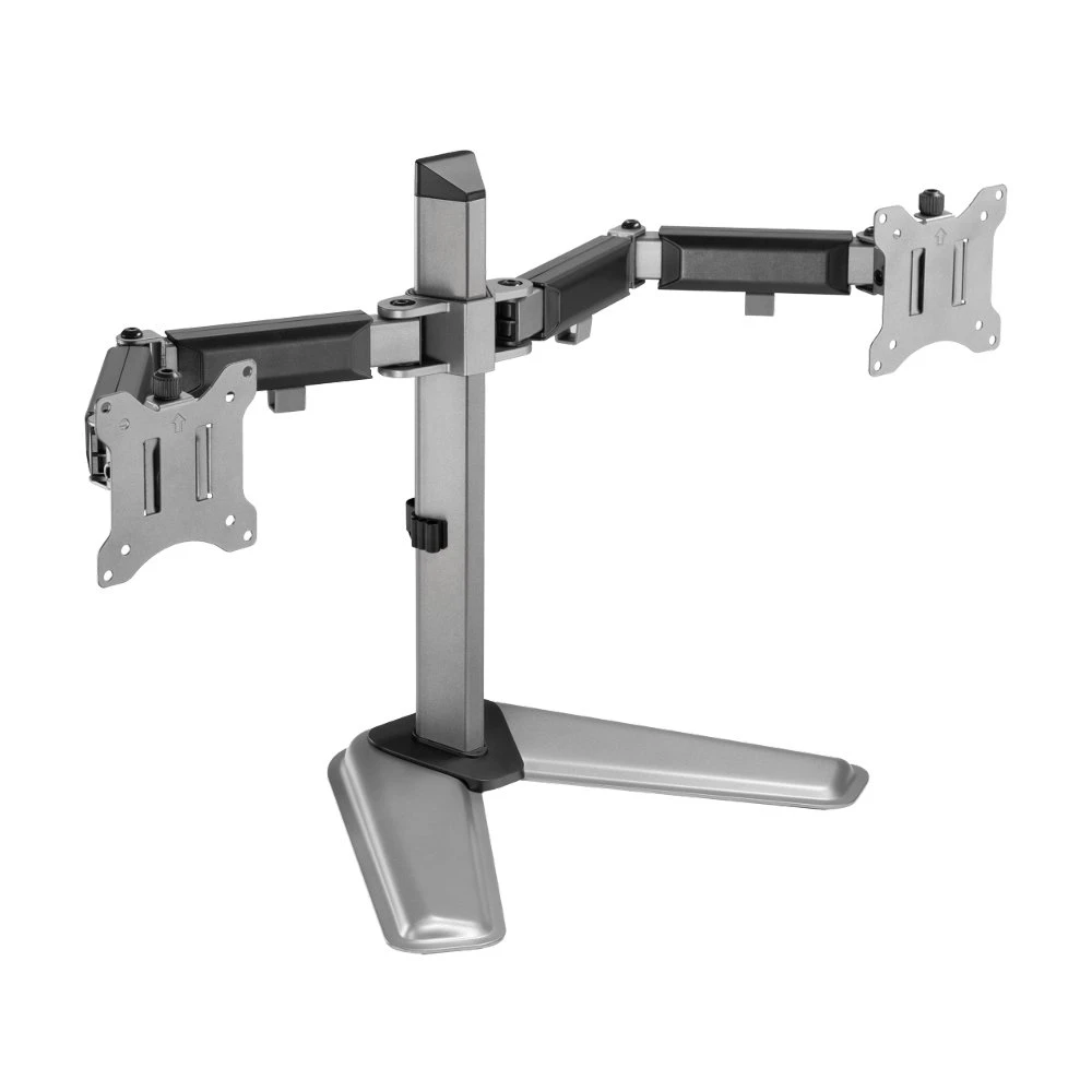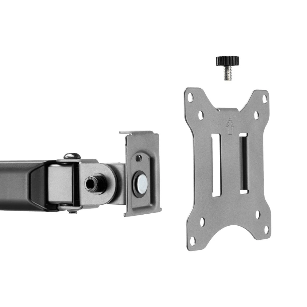 Met een armbereik van 380 mm kunnen de monitoren flexibel worden gepositioneerd, terwijl het geïntegreerde kabelbeheersysteem helpt om kabels netjes en georganiseerd te houden. De installatie is eenvoudig dankzij de stevige bureaubevestiging, die zowel met een klem als met een doorvoerbevestiging kan worden uitgevoerd.