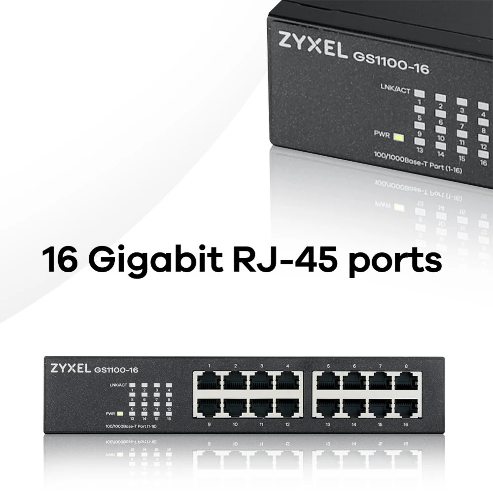 Zyxel 16-poorts Unmanaged Gigabit Switch – Zonder ventilator [GS1100-16]